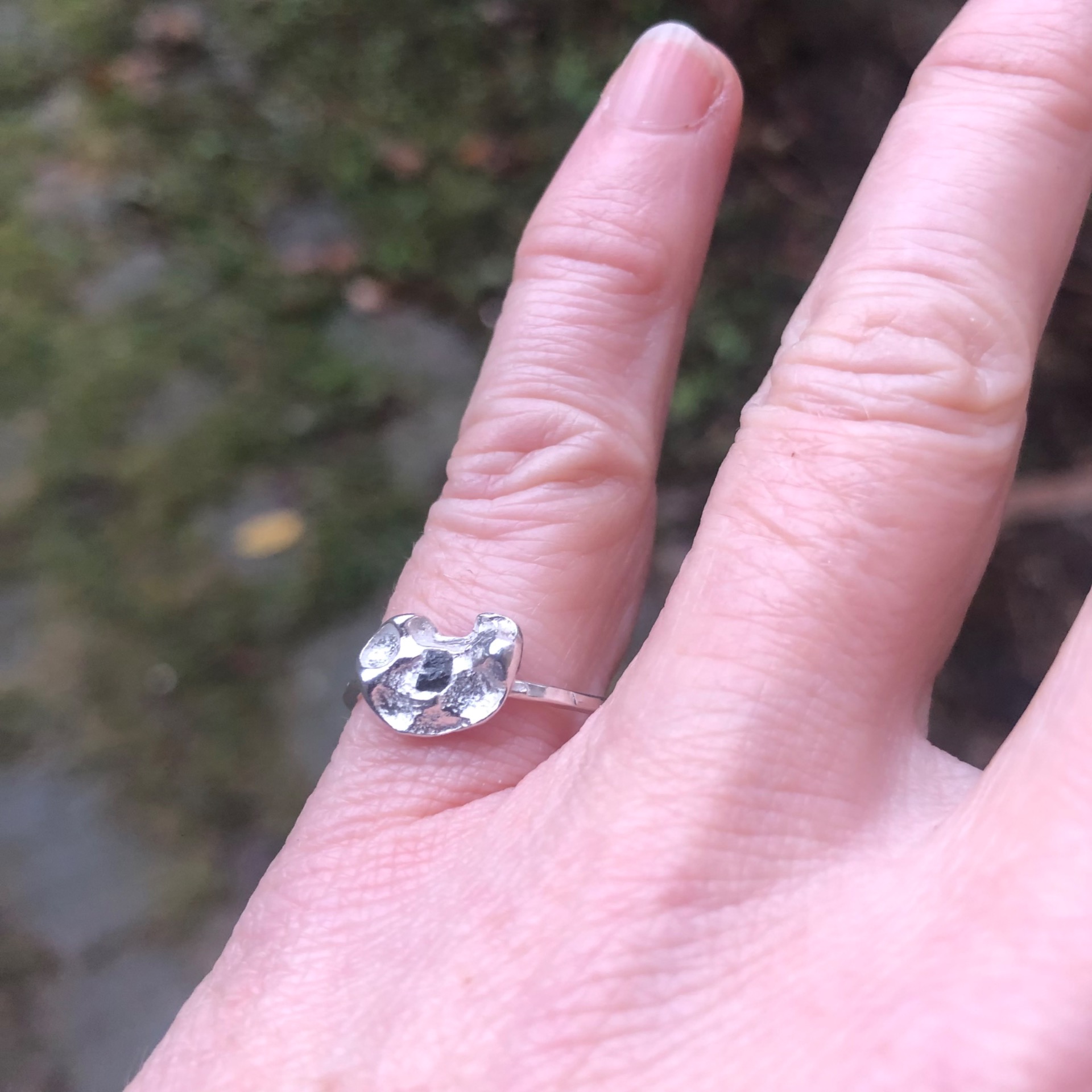 Jemný organický prstýnek s přírodním diamantem.